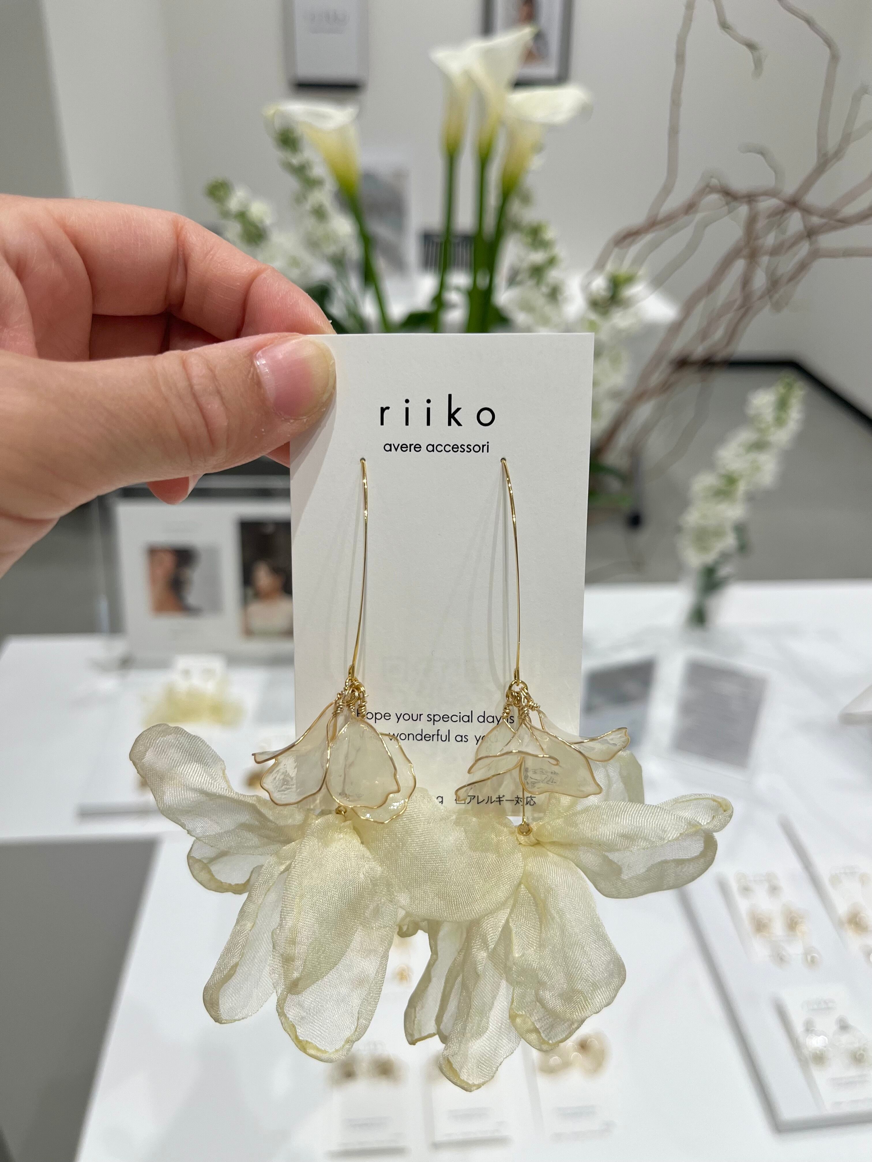 milky flower と ふわふわ揺れるシフォンリボンのブライダルアクセサリー。